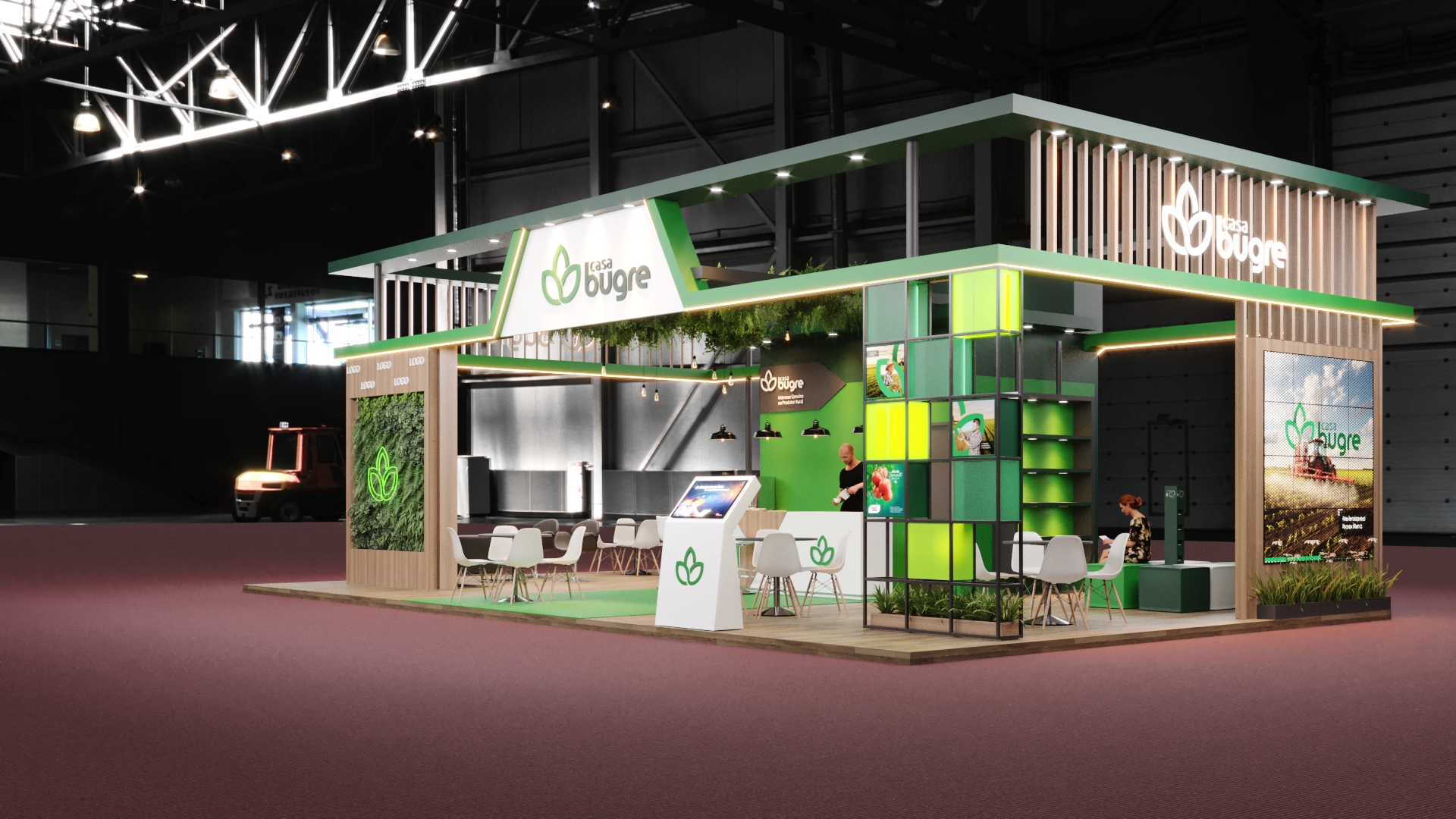 "Execução de estandes para feiras, centros comerciais e ocasiões especiais"